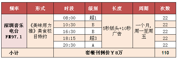 为推动餐饮行业的有力发展,考虑餐饮行业进行深圳广播广告宣传需求,我们制定了《餐饮行业深圳电台飞扬971广告方案》,在深圳电台飞扬971吃喝玩乐栏目中,为客户提供多元化的宣传推广。
