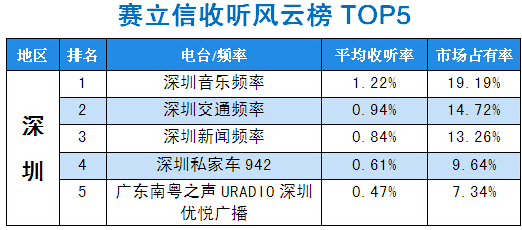 下面我们来看新一期的深圳广播电台TOP5的数据报告吧!