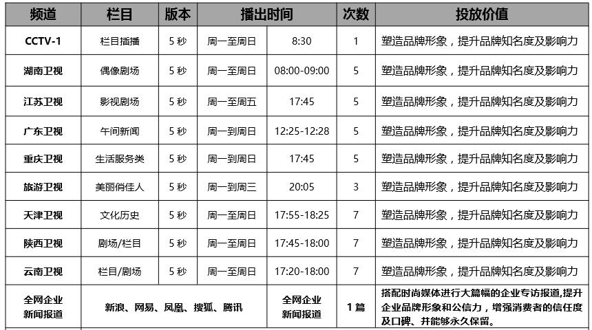 高洁雅品牌片cctv电视台、多个卫视品牌宣传方案:
