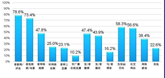 据调查,电视、广播、互联网的接触率分别是95.8%、62.5%、64.1%,广播和互联网的接触率不相上下,但是占比不高。如下图: