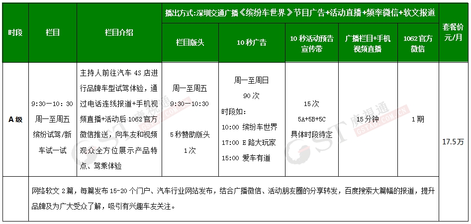 解析:深圳交通台1062的新车节目《缤纷车世界》里,汽车4S店试驾体验宣传回报如以下几点: