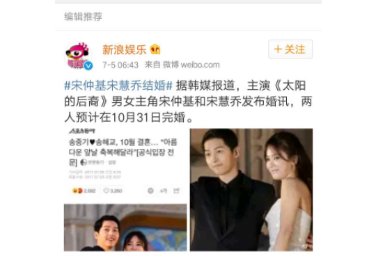 消息一出,网络纷纷刷屏,很快又成了网友忙碌的一天,波搜索对象是双宋的定情剧《太阳的后裔》、宋慧乔的前男友玄彬。