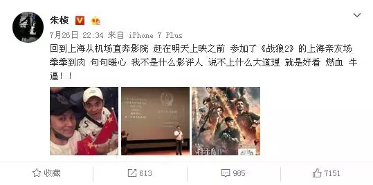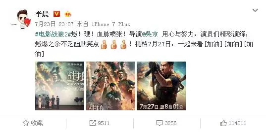 电影上映前,一些明星如李晨、朱桢都自发为《战狼2》宣传,明星的个人效应不仅扩大了电影的知名度,也为电影积累了初期的口碑。