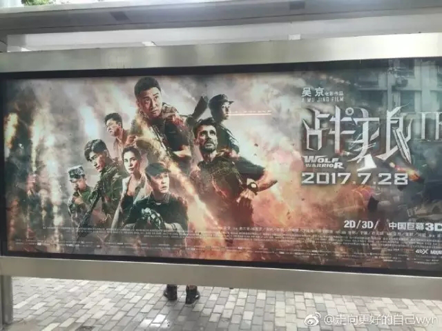 在地铁、公交站台和户外大屏等地方,《战狼2》也投放了户外广告,不仅有灯箱海报,也在地铁车厢内的显示屏上投放电影宣传片。地铁和公交作为人员流动大的地点之一,大限度地到达观众,再加上海报的强烈视觉效应,给观众留下了深刻印象。